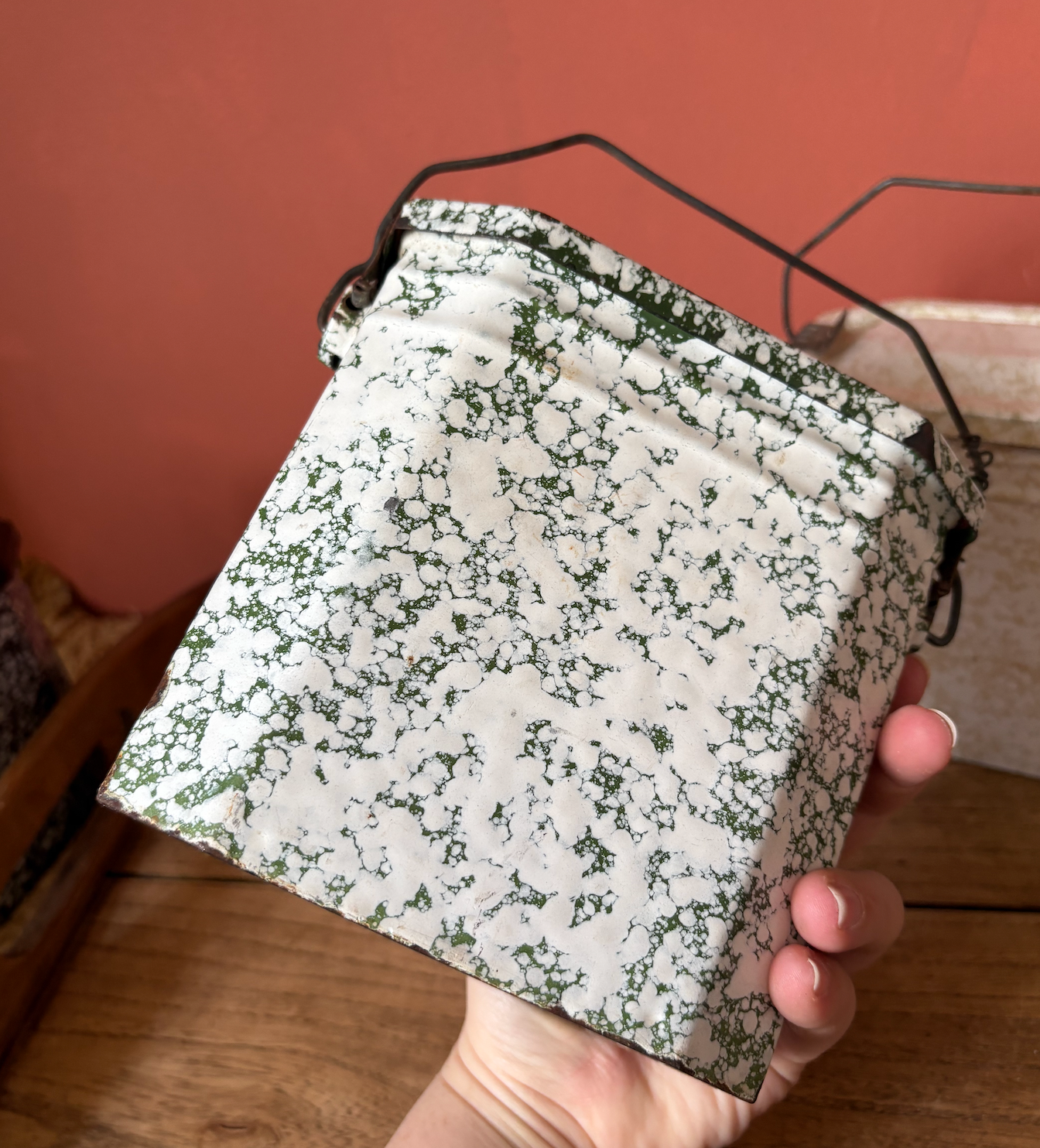 A trio of lovely French enamel lunch boxes. Perfect for camping or stylish storage.