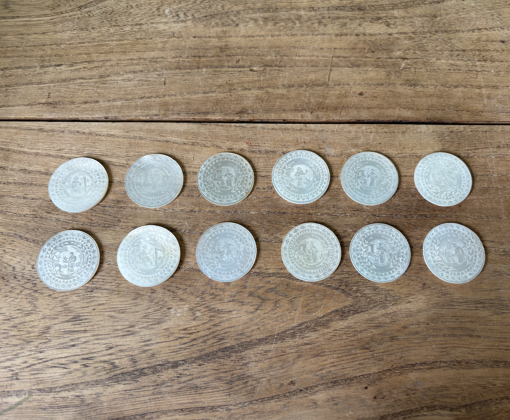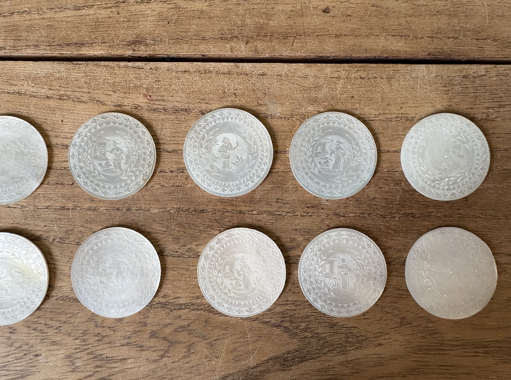 Set of 12 Antique Chinese Mother of Pearl Gaming Tokens